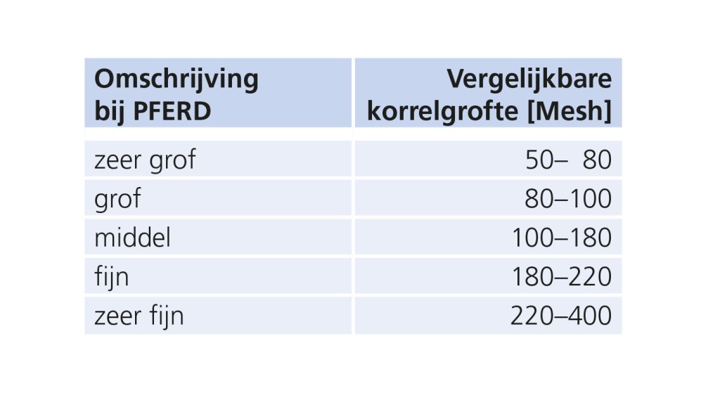 Bij conventioneel gebonden slijpmiddelen of flexibele slijpmiddelen kiest de gebruiker een specifieke korrelgrofte. Bij vliesslijpmiddelen volgt de aanduiding het volgende schema: