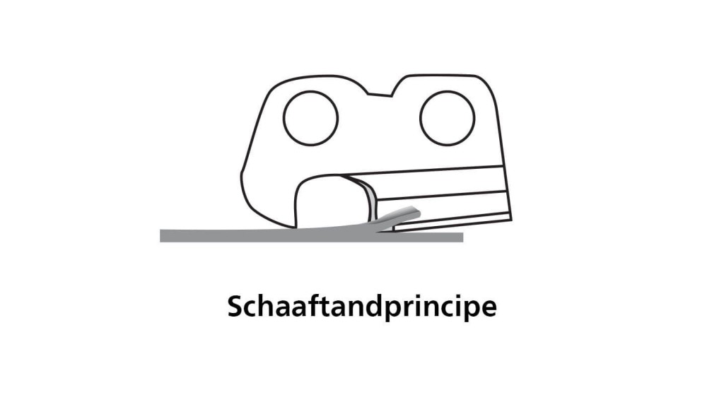 De zaagketting van een motorzaag werkt volgens het schaaftandprincipe. De spanen worden regelrecht uit het materiaal “geschaafd”.