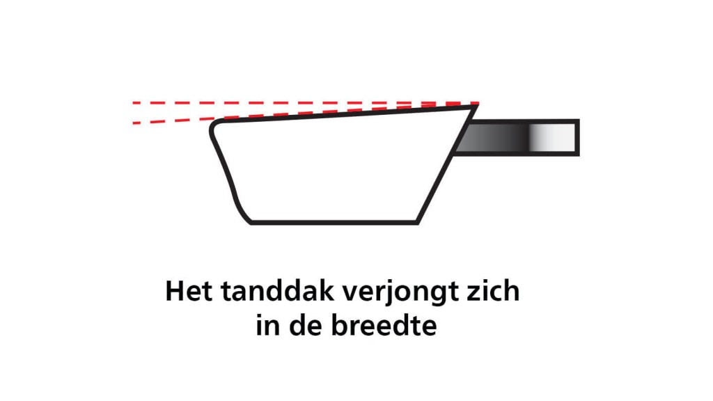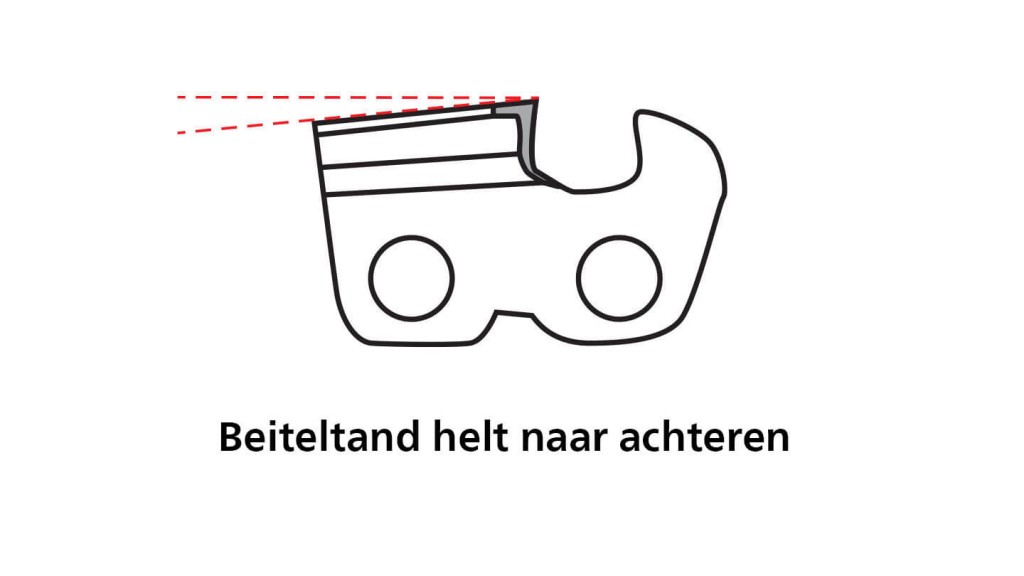 De verschillende tandvormen verschillen wat betreft de plaatsing van het voor- en bovensnijvlak. De tandvorm is het beste van achteren in de looprichting van de ketting te zien.