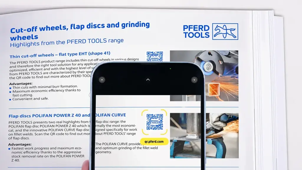Het PFERD TOOLS gereedschappenhandboek biedt naast beknopte productinformatie ook diepgaande multimediale informatie over elk afzonderlijk artikel in ons PFERD TOOLS assortiment. Deze informatie is beschikbaar in de digitale pdf-versie met één klik op het artikelnummer.